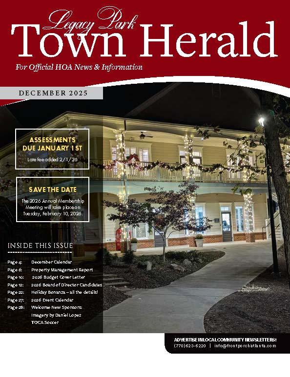 Welcome New Residents!! First and foremost, Welcome to the neighborhood! We know how hectic moving and getting settled in a new home can be, and we want to do all we can to make your first experiences in Legacy Park positive. This page serves a starting point to help find information to make your transition into the neighborhood as smooth as possible. I’ve moved in. What now? Still have questions or need help? Contact our HOA Staff if you still have questions or need additional assistance. The form below can be used or during office hours call (770) 919-2556.